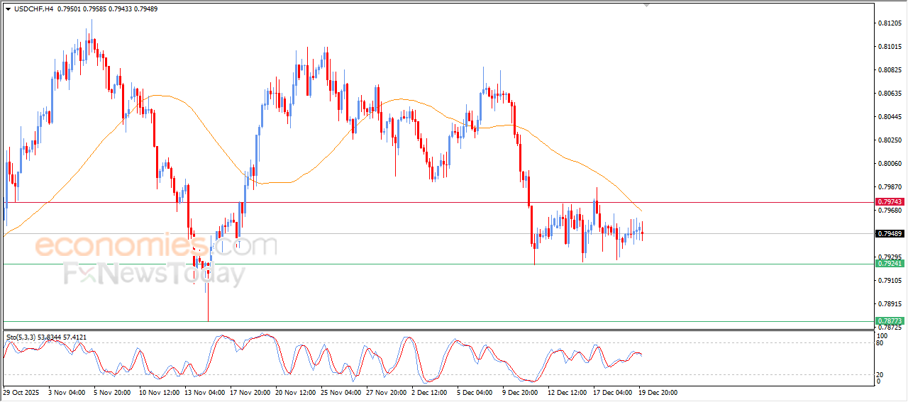 The (USDCHF) price witnessed fluctuating trading on its last intraday levels, amid the continuation of the negative pressure due to the trading below its EMA50, and under the dominance of minor bearish waves on the short-term basis, besides the beginning of negative signals emergence from the relative strength indicators, after reaching overbought levels, which intensifies the negative pressures around the price.