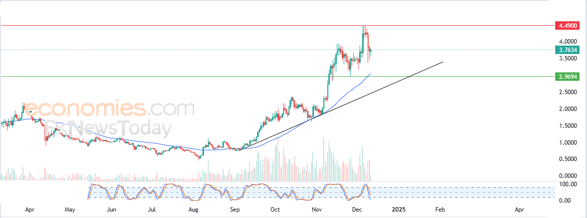 Therefore we expect the price to rise and target the resistance of $4.4900 anew, provided the support of $2.9694 holds on.