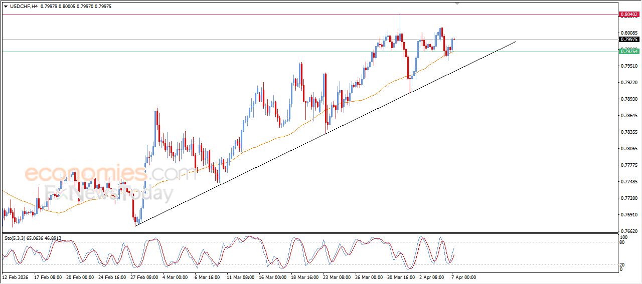The (USDCHF) surged higher during its latest intraday trading, supported by its EMA50, which provided positive momentum and helped achieve these gains. This comes amid the dominance of the main upward trend in the short term, with the pair moving along a supporting trendline. In the background, we also notice the emergence of positive signals from the relative strength indicators after reaching heavily oversold levels.