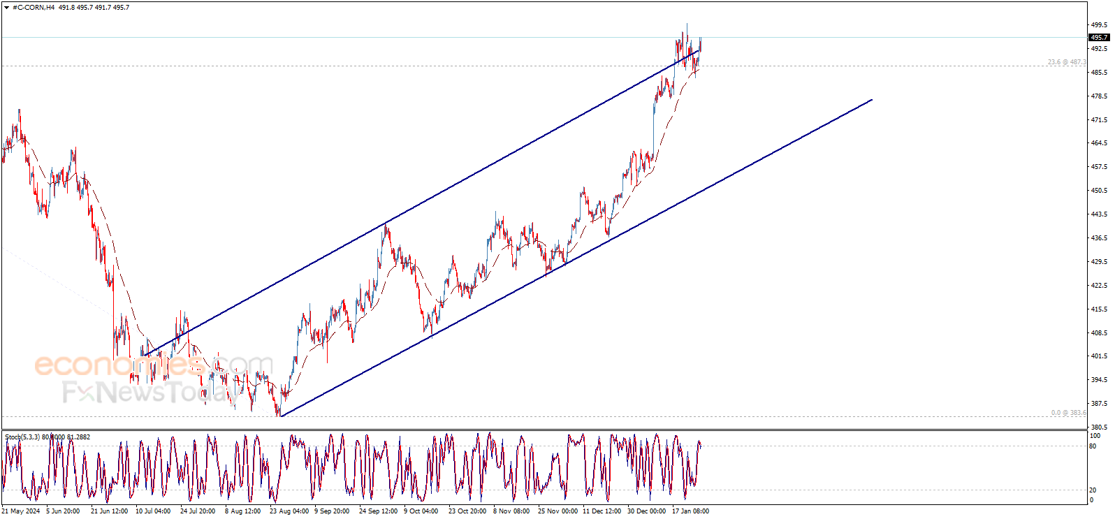 Corn price resumed its positive trading clearly to reach 500.00$ barrier now, reinforcing the expectations of continuing the bullish trend in the upcoming sessions, reminding you that our next target is located at 516.00$.
