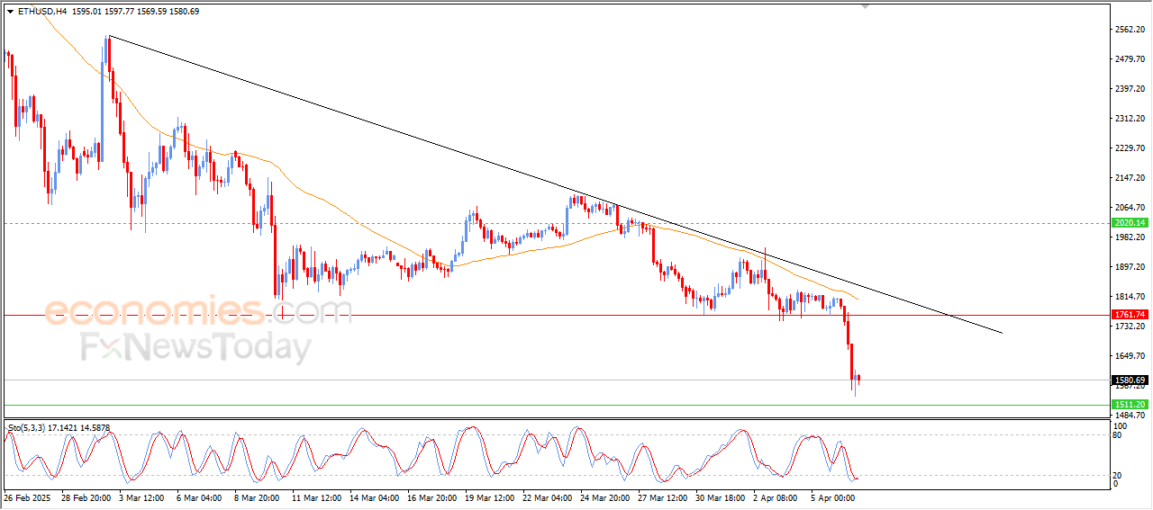 Ethereum price declined in its last trading on the intraday levels, where it moves under a clear domination for the bearish trend on the short term basis, and it keeps trading beside a trend line, which reinforces the negative pressure on it, especially with the continuation of its move below the EMA50, which pushed the bearish track to record its lowest levels since the last quarter of 2023, in a clear signal for the continuation of the selling momentum until this moment.