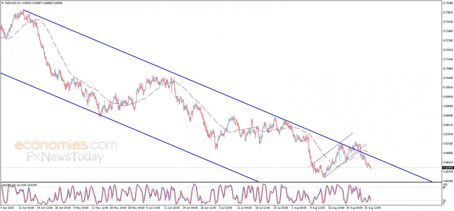 The NZDUSD pair shows slight bearish bias to move below 0.6600 barrier, falling under continuous negative pressure that comes by the EMA50, to continue suggesting the bearish trend that targets 0.6500 level as a next station, as the price moves inside the main bearish channel that appears on the chart, reminding you that the continuation of the expected decline depends on holding below 0.6660.