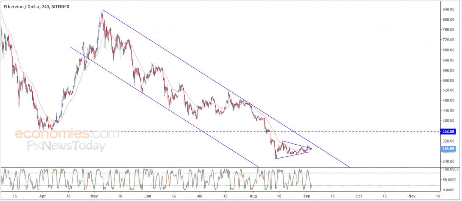 Ethereum price keeps fluctuating around the EMA50, and the price still inside the bearish channel that appears on the chart, which keeps our bearish overview valid until now, depending on the price stability below 295.00, reminding you that our next target is located at 175.00.