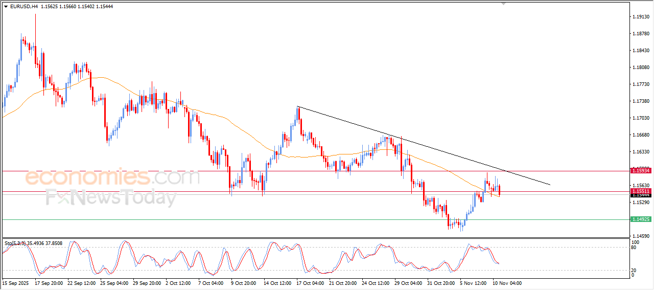 The (EURUSD) declined in its last intraday trading, affected by the stability of the critical resistance at 1.1550, by negative pressure due to the emergence of the negative signals on the relative strength indicators, besides the dominance of the main bearish trend and its trading alongside supportive minor trendline for this track.