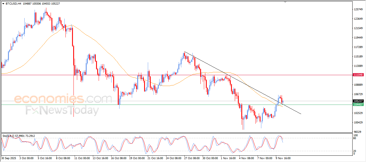 The (BTCUSD) price declined in its recent intraday trading, gathering the gains of its previous rises, and attempting to offload some of its overbought conditions on the relative strength indicators, especially with the emergence of the negative signals on the relative strength indicators, affected by breaching minor bearish trend line on the short-term basis, with its trading above EMA50, reinforcing the chances of the price recovery on the near-term basis.