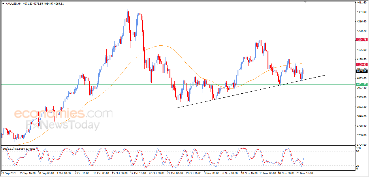 The (Gold) settled higher in its last intraday trading, as it leaned on the minor bullish trend line’s support on the short-term basis, after reaching oversold levels, reinforcing the bullish momentum, amid the continuation of the negative pressure that comes from its trading below EMA50, reducing the chances of sustainable recovery on the near-term basis.
