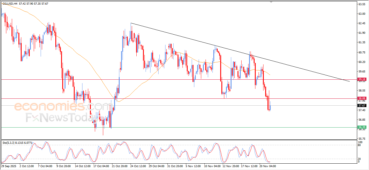The (crude oil) rose in its last intraday trading, in attempt to recover some of its previous losses, attempting to offload some of its clear oversold conditions on the relative strength indicators, especially with the emergence of positive overlapping signals, amid the continuation of the negative pressure due to its trading below EMA50, and under the dominance of the main bearish trend on the short-term basis and its trading alongside minor trend line.