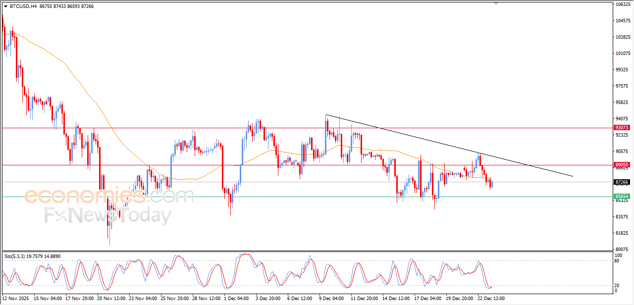 The (BTCUSD) price rose during its last intraday trading, attempting to recover some of its previous losses, attempting to offload some of its clear oversold levels on the relative strength indicators, especially with the emergence of positive overlapping signals, and there is negative pressure due to its trading below EMA50, and under the dominance of the main bearish trend and its trading alongside minor trend line on the short-term basis.