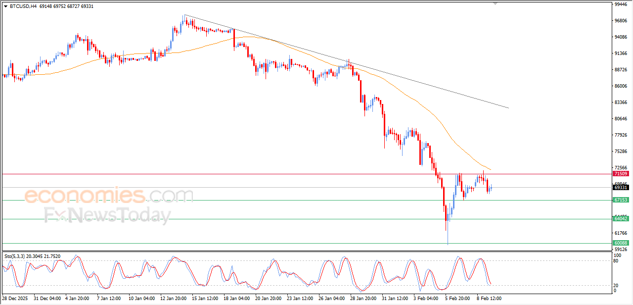 The (BTCUSD) price settles on a decline in its last intraday trading, amid the continuation of the negative pressure due to its trading below EMA50, reinforcing the strength and stability of the main bearish trend on short-term basis, accompanied by the emergence of negative signals from relative strength indicators, despite reaching exaggerated oversold levels compared to the price move, indicating a quick decline for the negative pressure around the price, which might push it to fluctuate in near-term basis.