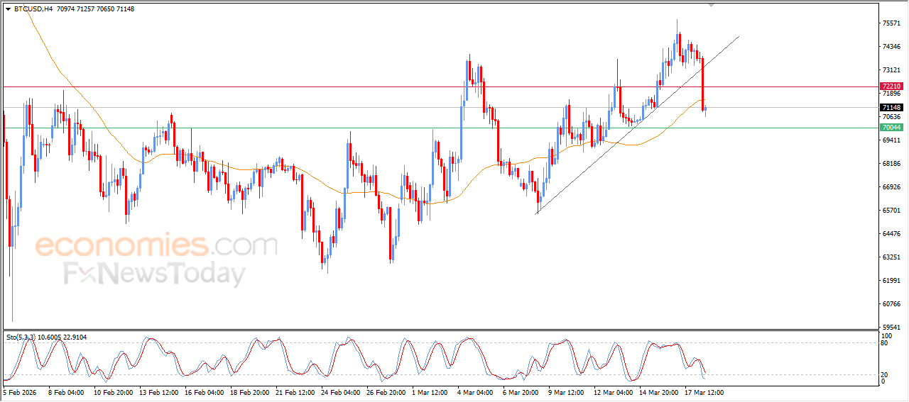 The (BTCUSD) price experienced sharp losses in its last intraday trading, to break minor bullish trend line on short-term basis, to continue the decline surpassing EMA50’s support, which intensifies the negative pressures in the upcoming near period, especially with the emergence of the negative signals from the relative strength indicators, despite reaching oversold levels.
