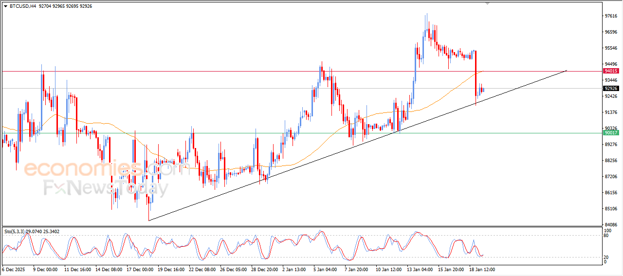 Therefore, our expectations suggest a decline in (BTCUSD) price in its upcoming intraday trading, conditioned by the stability of $94,000 resistance, to target $90,000 support level.
