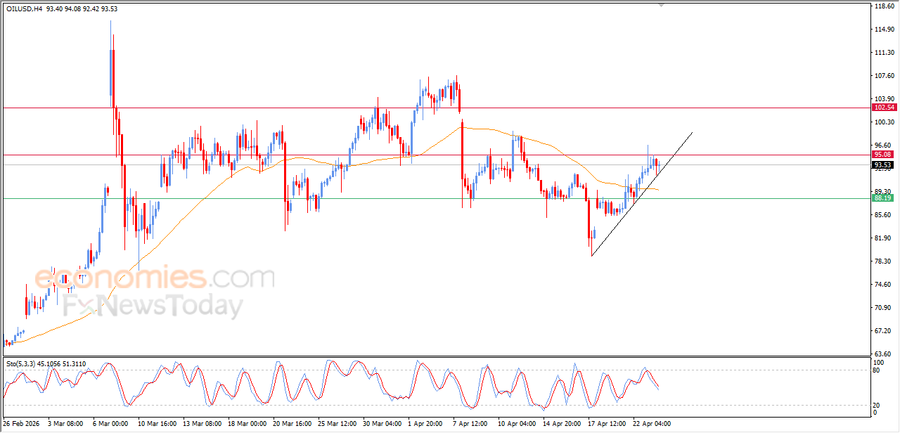 Crude oil prices is experiencing fluctuating trading on its latest intraday levels, amid its attempts to gain bullish momentum that might help it to breach the current resistance level at $95.00, taking advantage of the dynamic support that is represented by its trading above EMA50, to notice offloading its overbought conditions on the relative strength indicators, reinforcing the chance of its recovery on the near-term basis.