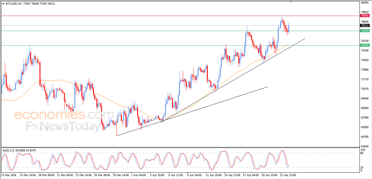 Bitcoin price surged higher during the latest intraday trading, affected by the stability of the key support level at $77,500, supported by its continued trading above EMA50, reinforcing the stability and dominance of the main bullish trend on the short-term basis, besides forming positive divergence on the relative strength indicators, after reaching oversold levels, exaggeratedly compared to the price move, with the emergence of positive crossover.