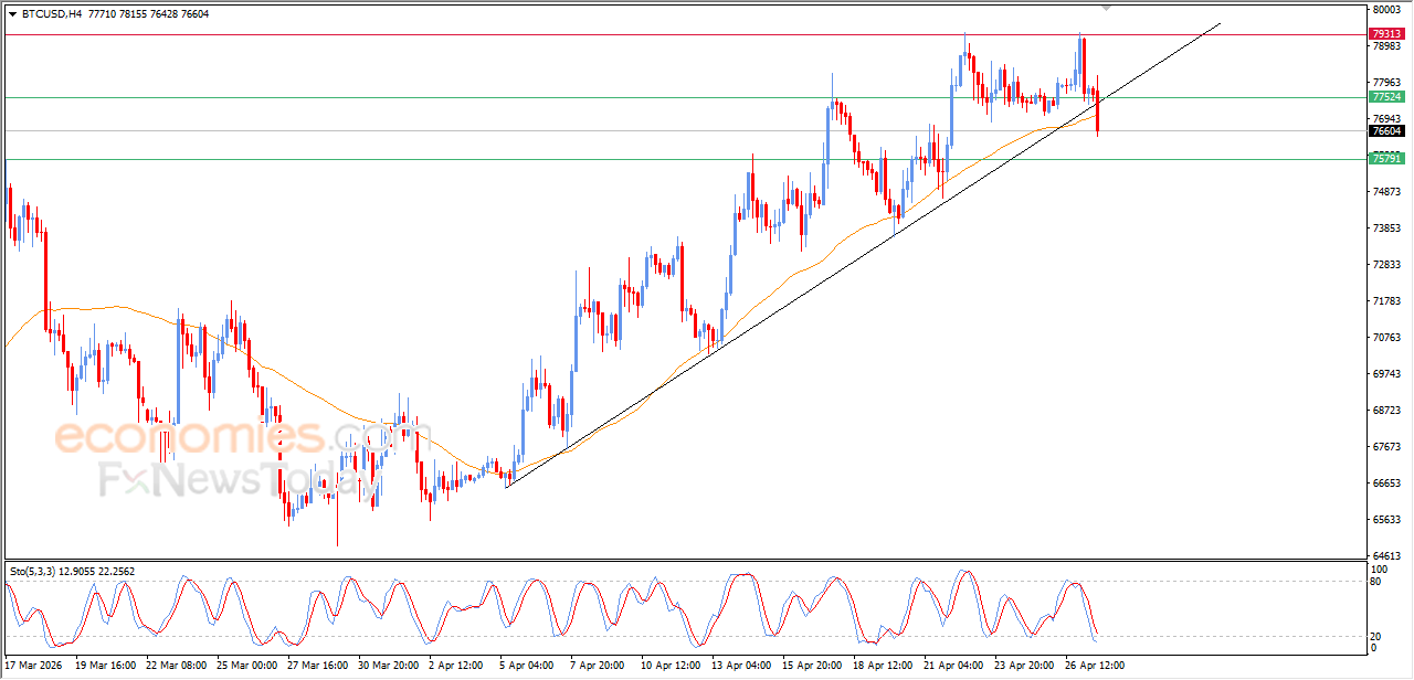 Bitcoin (BTCUSD) is deepening its losses in its last intraday trading, to break main bullish trend line on the short-term basis, accompanied by surpassing EMA50’s support, facing intensified negative pressure to change our scenario to the downside, especially with the emergence of the negative signals from the relative strength indicators.
