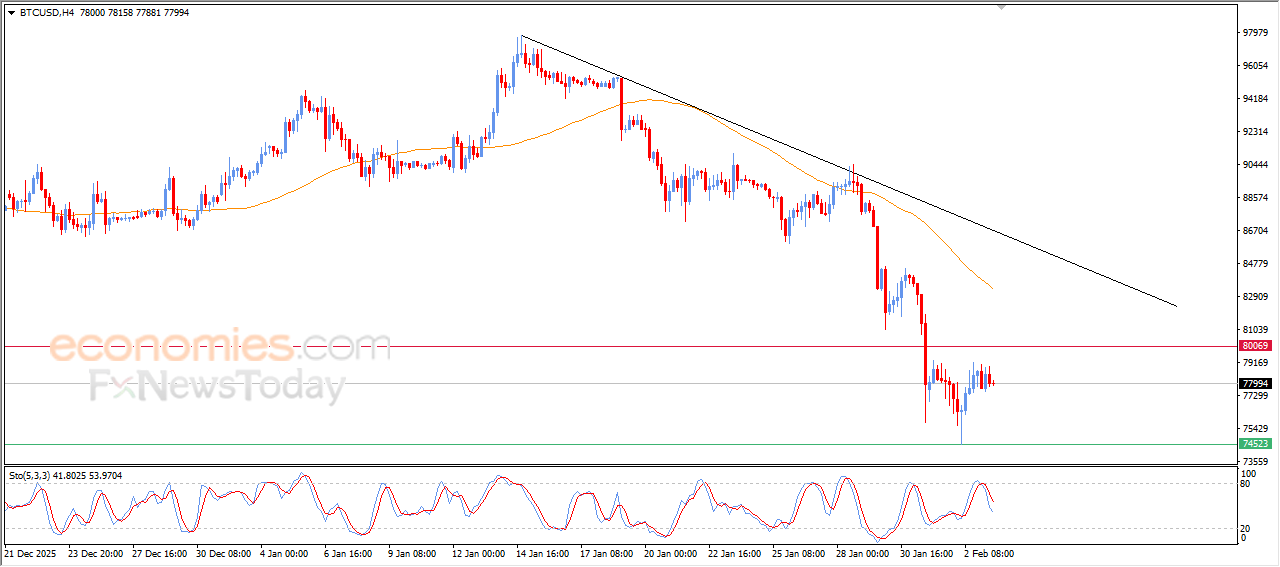BTCUSD price declined slightly in its last intraday trading, with the emergence of negative signals from relative strength indicators, after reaching overbought levels, amid the continuation of the negative pressure due to its trading below EMA50, reinforcing the strength and stability of the main bearish trend on short-term basis, especially with its trading alongside supportive trend line for this track.