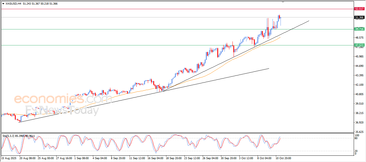 The price of (silver) witnessed fluctuated trading on its last intraday levels, attempting to gain bullish momentum that supports the stability of the main bullish trend on short-term basis and its trading alongside trendline, with the continuation of the positive pressure that comes from its trading above EMA50, besides the emergence of the positive signals on the relative strength indicators.