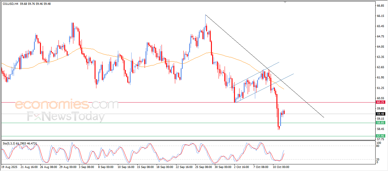 Brent crude oil prices declined in their last intraday trading, amid the stability of the key resistance at $63.95, amid the continuation of the negative pressure due to its trading below EMA50, and under the dominance of the main bearish trend on the short-term basis and its trading alongside trendline, and it witnessed previous bullish rebounds that aimed to offload the oversold conditions on the relative strength indicators, and the price lost its bullish momentum gradually to begin the bearish movement.
