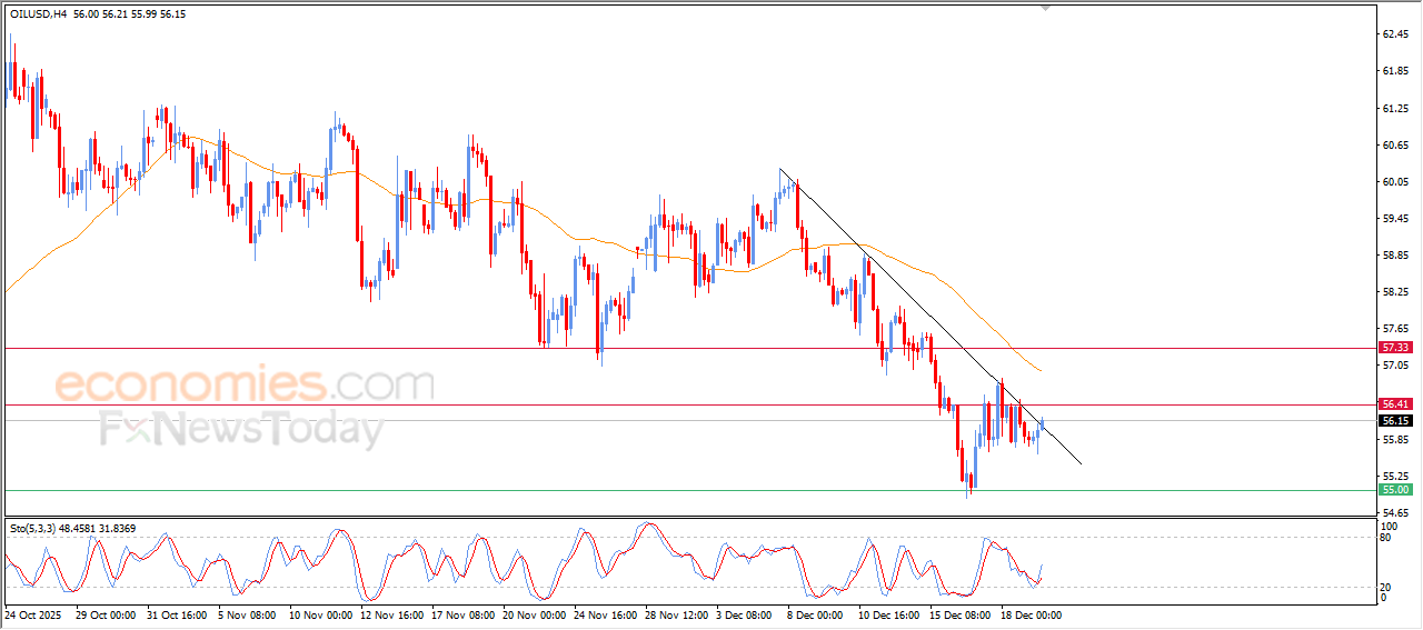 The price of (crude oil) rose in its last intraday trading, supported by the emergence of the positive signals on the relative strength indicators, after reaching oversold levels, testing a steep minor bearish trend line on the short-term basis, amid the continuation of the dynamic negative pressure that is represented by its trading below EMA50, reducing the chances of sustainable recovery on the near-term basis.
