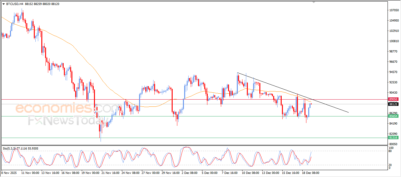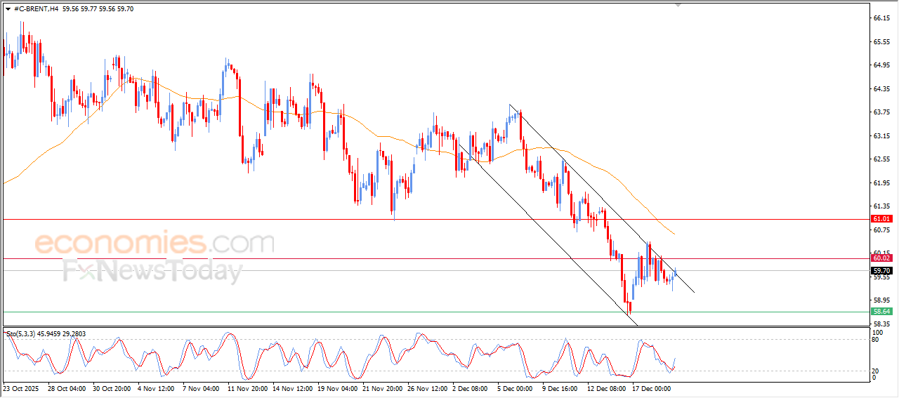 Brent crude oil’s price rose in its recent intraday trading, amid its trading within minor bearish channel’s range that limits its previous trading on the short-term basis, with the continuation of the negative pressure due to its trading below EMA50, which represents additional burden that prevents extending the gains in the upcoming period, to offload its clear oversold conditions on the relative strength indicators, especially with the emergence of the positive signals from there.