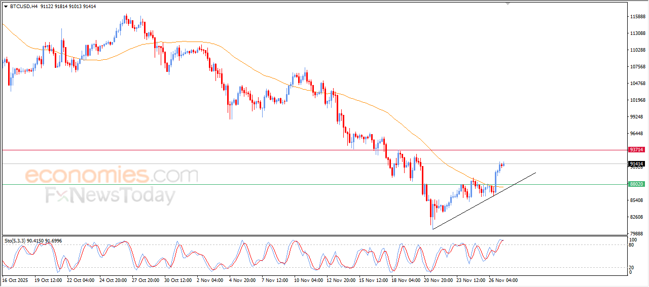 Bitcoin (BTCUSD) prices rose during the last intraday trading, amid the dominance of bullish corrective wave on the short-term basis that is represented by its trading above EMA50, on the other hand we notice the emergence of negative overlapping signals on the relative strength indicators, after reaching overbought levels, which may reduce the upcoming gains.