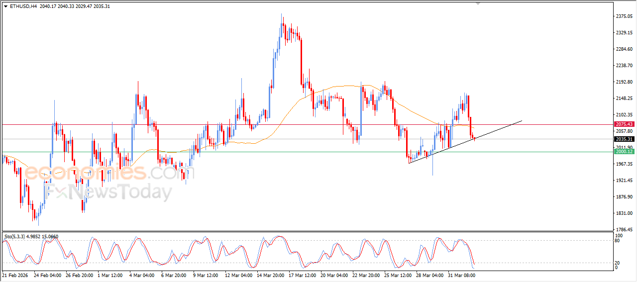 Ethereum price (ETHUSD) deepened its losses during recent intraday trading after breaking below the support of EMA50. This exposed the price to negative pressure and led to continued decline, especially with ongoing negative signals from the relative strength indicators, despite it reaching heavily oversold levels.