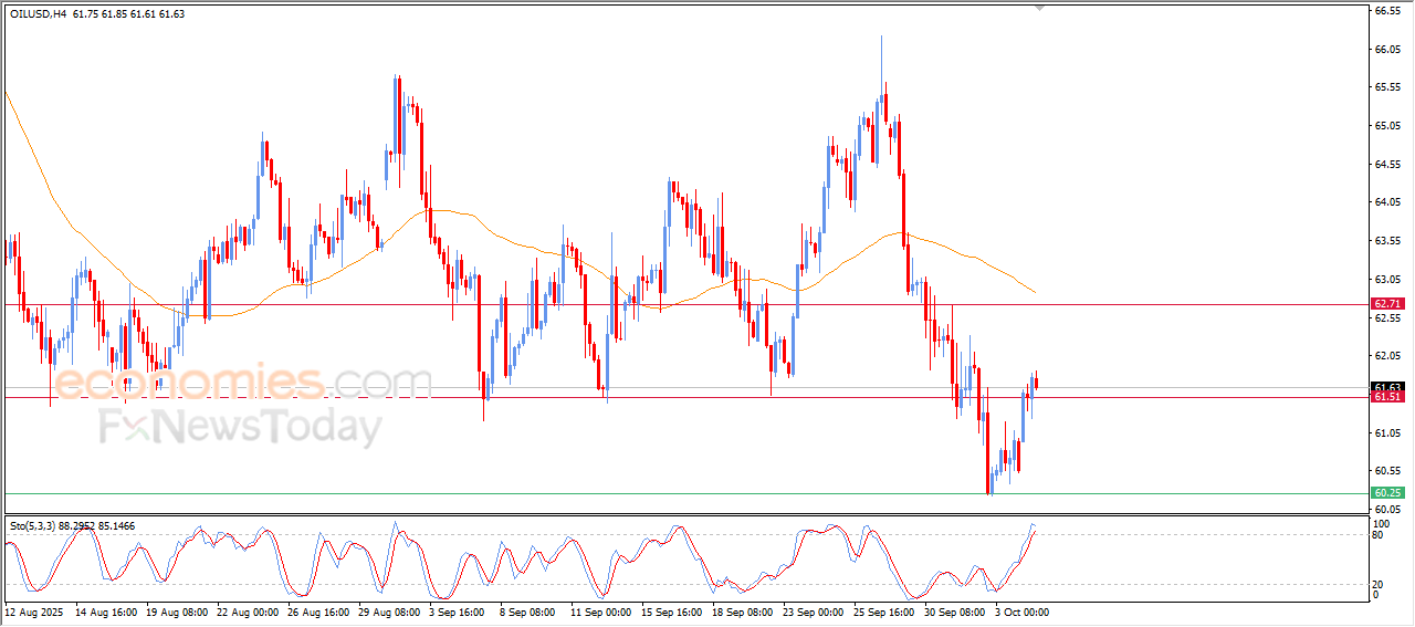 The price of (crude oil) settled with gains in its last intraday trading, breaching the critical resistance level at $61.50, supported by the positive signals on the relative strength indicators, despite reaching overbought levels, to begin bullish correctional track on the short-term basis, but it might not extend a lot due to the continuation of the upcoming negative pressure from the trading below EMA50, reducing the chances of its recovery on the near-term basis.