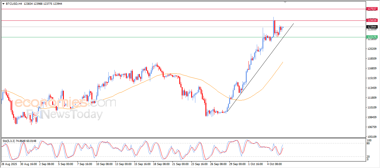 Bitcoin (BTCUSD) prices rose in their upcoming trading on the intraday basis, accompanied by the supportive signals on the relative strength indicators, after forming positive divergence, amid the continuation of its trading above EMA50, reinforcing the stability of the main bullish trend on the short-term basis, especially with the price trading alongside steep trendline, indicating the strength of this trend.