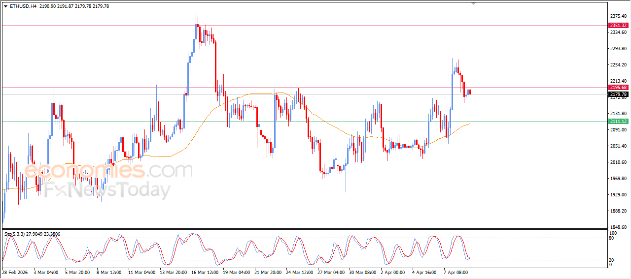 Ethereum (ETHUSD) declined again during recent intraday trading, while remaining below the key resistance level at $2,195, as it continues attempting to gain positive momentum that may help it break through this resistance.