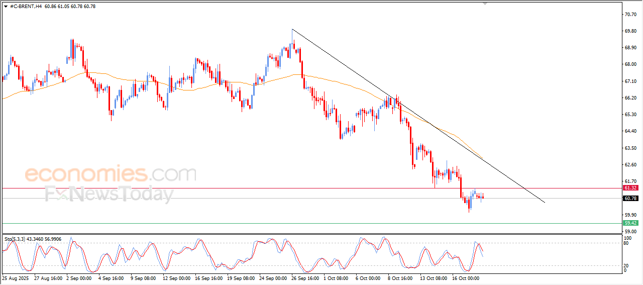 Brent crude oil prices declined slightly in their last intraday trading, amid the dominance of the main bearish trend in the short-term basis, with the continuation of the negative pressure due to its trading below EMA50, the negative signals emergence of the relative strength indicators intensifies the selling pressures, after reaching overbought levels.