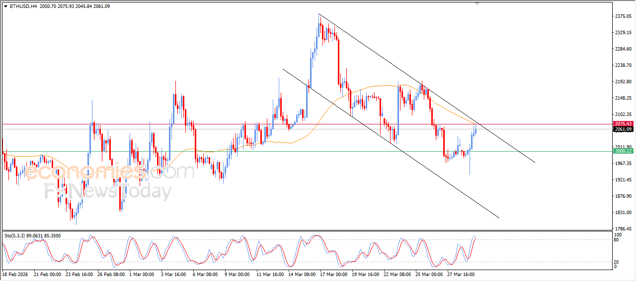 Ethereum (ETHUSD) extended its gains during recent intraday trading, reaching the resistance of EMA50, supported by positive signals from the relative strength indicator, However, it entered heavily overbought territory, excessively compared to price action, raising the risk of a bearish reversal.