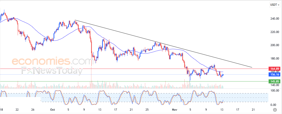 Therefore, we expect the cryptocurrency to decline in the upcoming intraday sessions, as long as the resistance level of $164.90 remains intact, targeting the pivotal support of $145.85.
