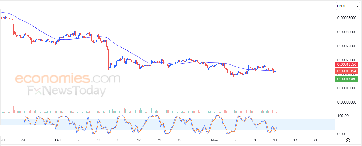 Therefore, we expect the token’s price to decline in the coming intraday sessions, as long as it remains below the resistance level of 0.00018556, targeting the pivotal support level of 0.00013260.