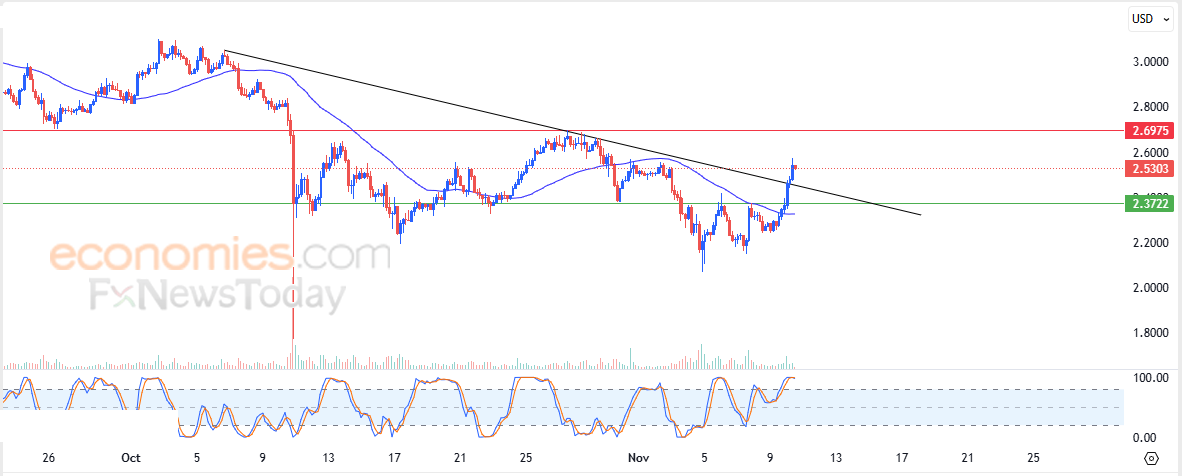 Therefore, we expect the cryptocurrency to rise in its upcoming intraday trading as long as it remains above $2.3722, targeting the key resistance level of $2.6975.