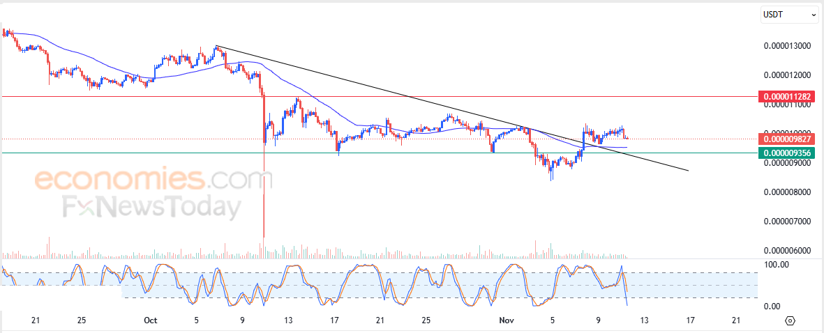 Therefore, we expect the digital currency to rise in its upcoming intraday trading sessions as long as the support level of 0.000009356 holds, targeting the key resistance level of 0.000011282.