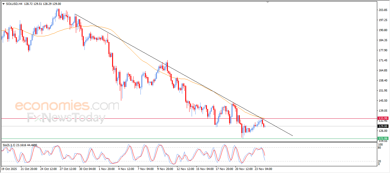 Therefore, we expect the cryptocurrency to decline in the upcoming intraday sessions, as long as it remains below 134.00, targeting the key support level at 121.25.