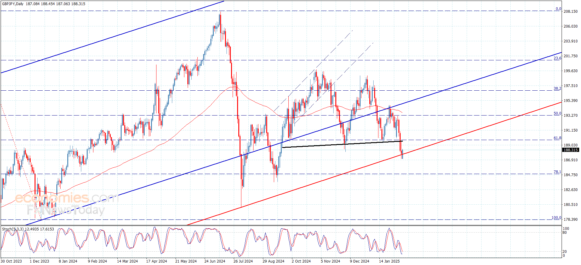 The GBPJPY pair touched the positive target at 189.50 on last Friday, to form solid barrier against the bullish attempts and provide new negative attack to attack the major support by reaching 187.10 followed by bouncing this morning towards 188.20.