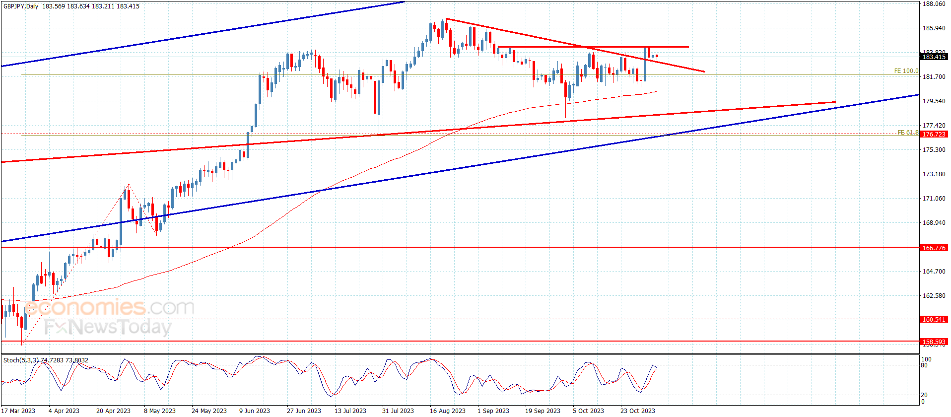 The GBPJPY pair repeated the positive closings above 183.00 level that formed additional support against the bullish attempts, to notice its fluctuation near 183.40 since morning, while the price needs new positive momentum to manage to attack 184.25 obstacle, assuring the importance of surpassing it to target more positive stations near 184.80 and 185.20.