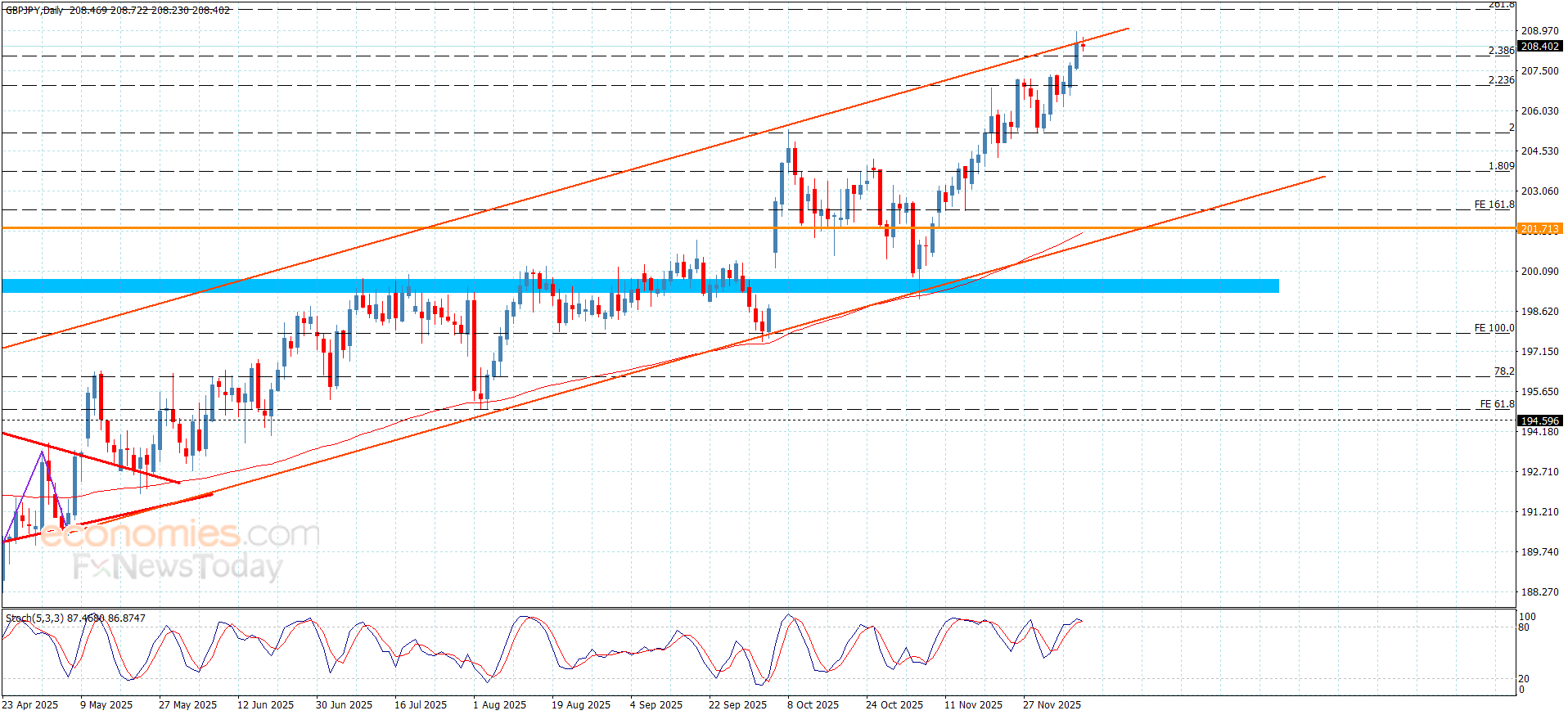 No escape from resuming the bullish attack, breaching 208.60 level make us expect targeting new bullish stations by its rally towards 209.30 reaching 261.8%Fibonacci extension level near 209.75.