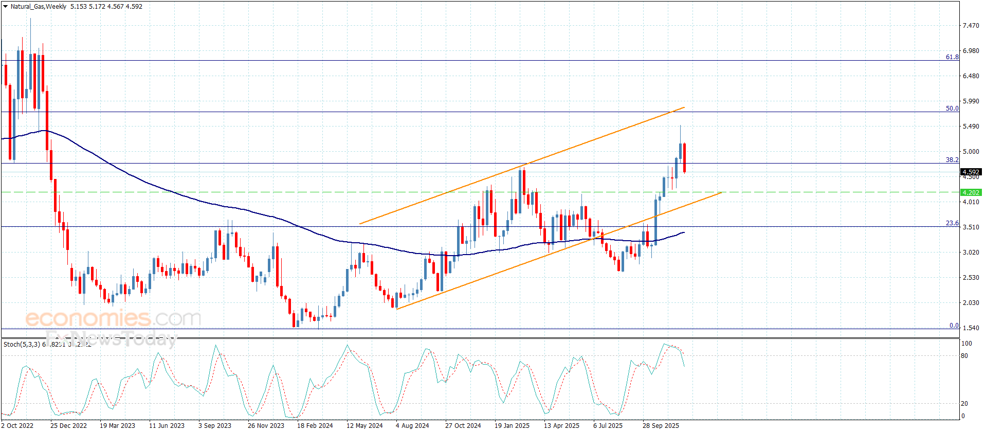 Natural gas prices activated the scenario of gathering the gains by reaching below the extra support at $4.750, targeting $4.580 level as appears in the above image.