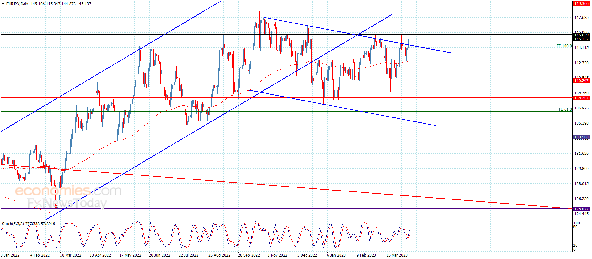 The upcoming scenario depends on the strength of the mentioned resistance, as its stability allows us to expect renewing the negative attempts to attempt to reach 144.10 level initially, while succeeding to breach the resistance and holding above it will confirm moving to the bullish track, to expect achieving new gains that might start at 146.45 and 147.10.