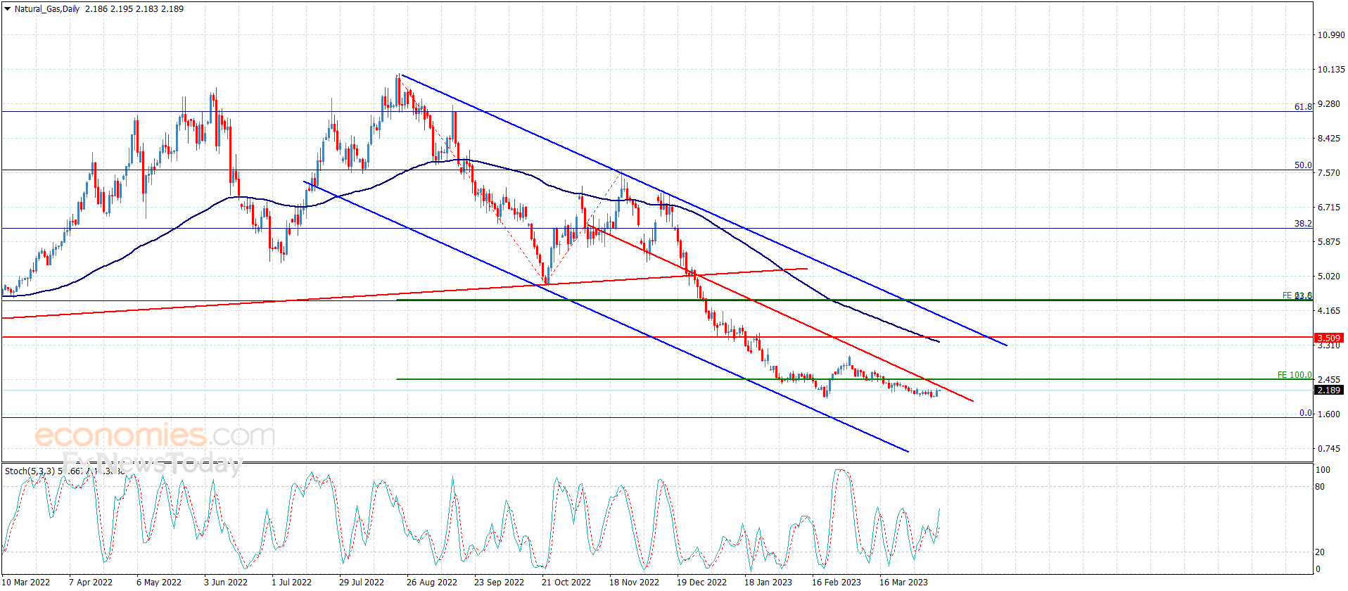 No news for natural gas price until this moment, to provide more sideways trades and settling near 2.200 without achieving any new negative target, while the sideways move is caused by the continuous contradiction between stochastic rally above 50 and providing temporarily positive momentum.