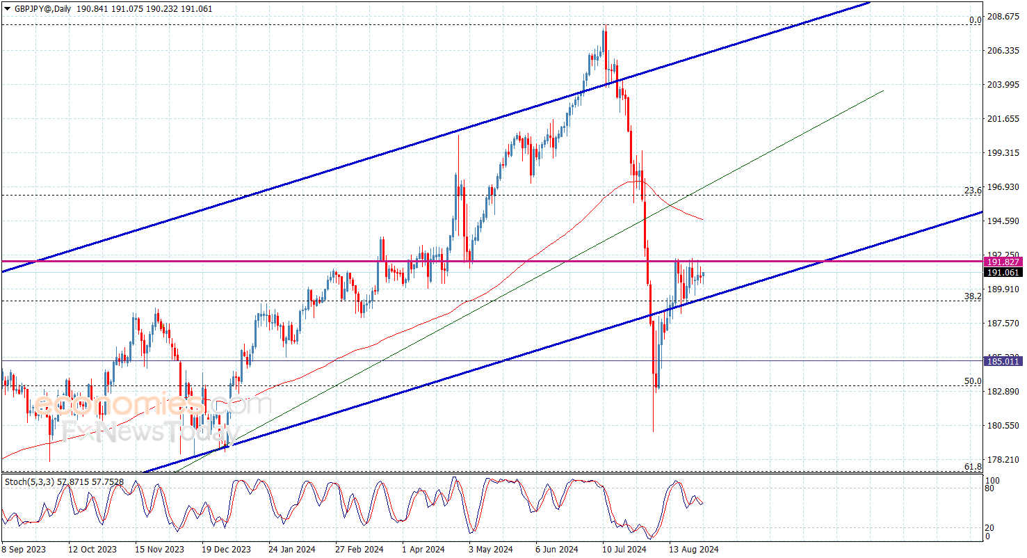 No news for the GBPJPY pair until this moment, to continue forming mixed trades due to its move between 191.90 resistance and 189.40 support lines.