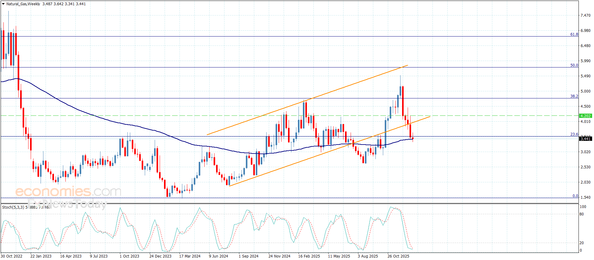 Natural gas price repeatedly provided new bearish closes by its stability below $3.970 resistance, activating with stochastic negativity by attacking the moving average 55, which keeps forming a key obstacle at $3.450.