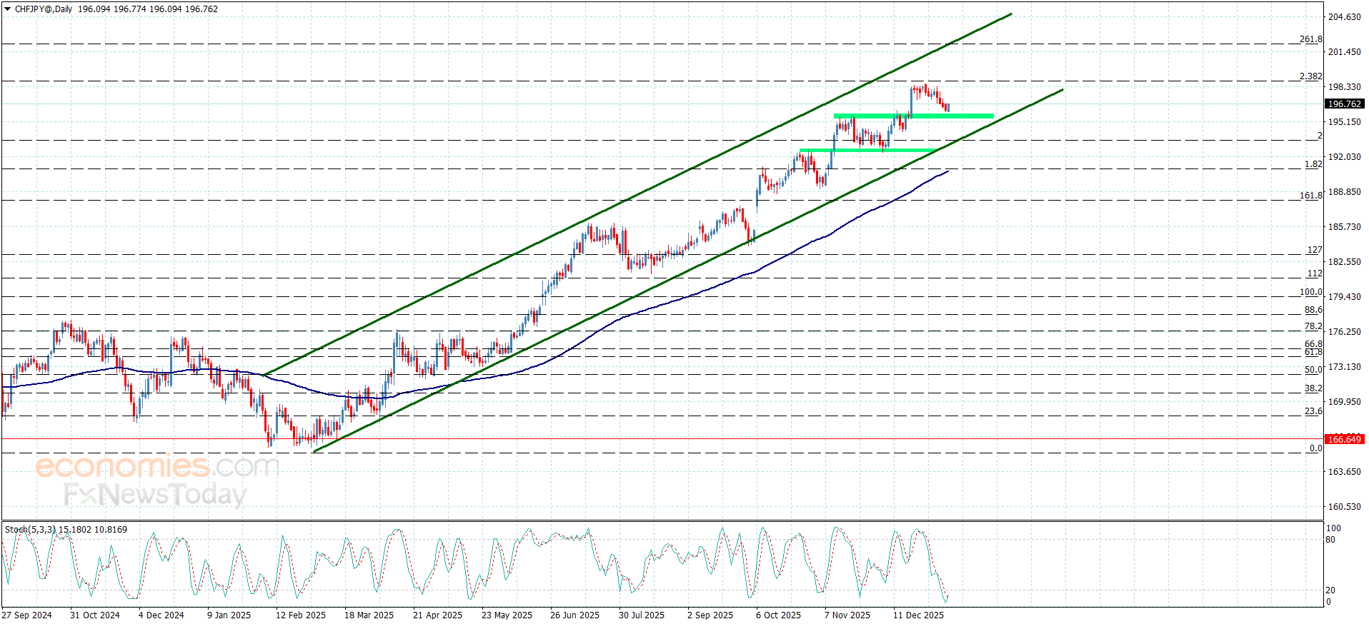 The CHFJPY formed bearish corrective waves after recording 198.40 level, to activate the attempts of gathering the gains, to notice its approach from the initial extra support at 195.75.