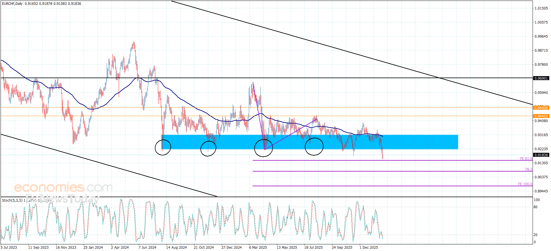 The EURCF declines below the support– Forecast today – 28-1-2026