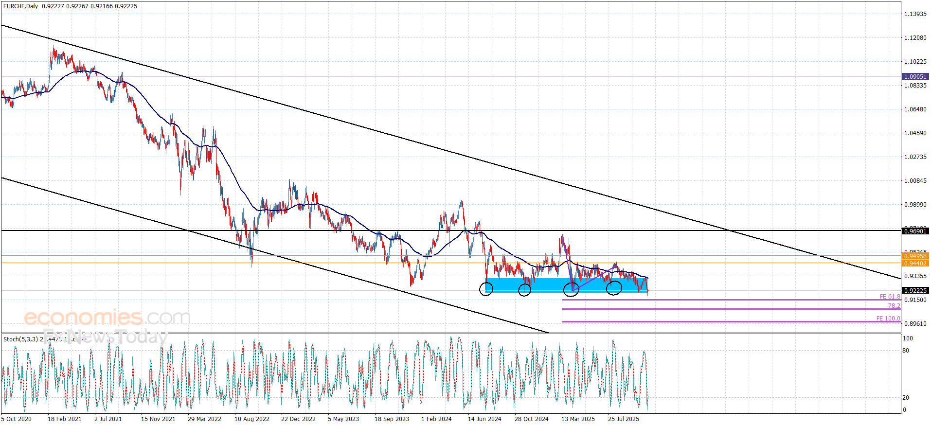 The EURCHF confirmed its surrender to the bearish scenario by providing several negative closes below the moving average 55 at 0.9315, attacking the support base at 0.9220 level.