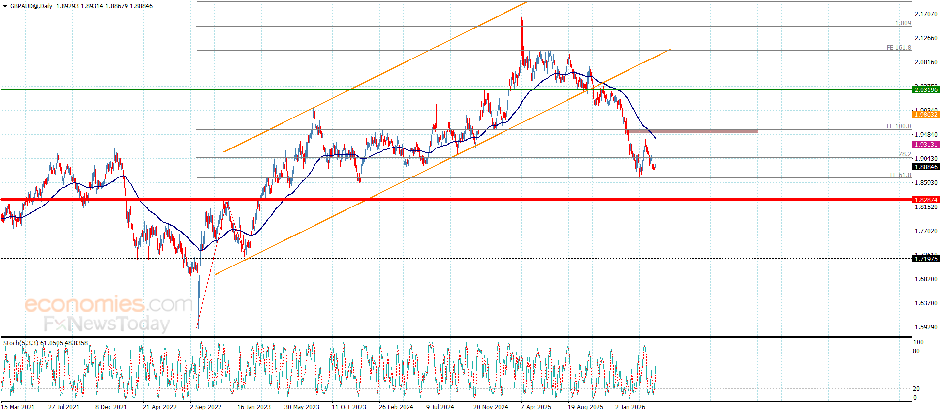 To provide sideways trading until gathering extra negative momentum to attack %61.8 Fibonacci extension level at 1.8680 and breaking this barrier might extend the losses in the upcoming period trading towards 1.8500 reaching the next main support at 1.8290.