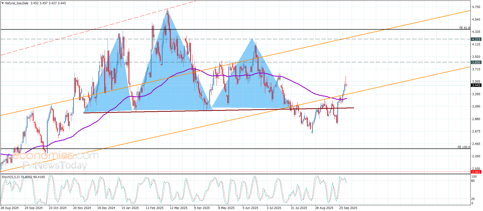 Natural gas price reached $3.600 level, achieving the second suggested target in the previous report, which forced it to form quick correctional rebound, to settle near $3.440.