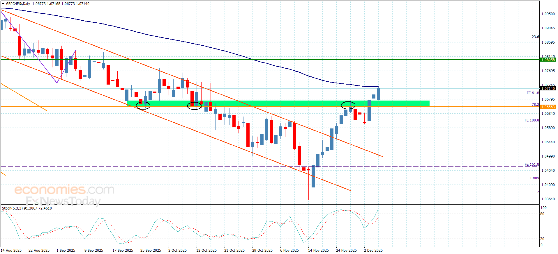GBPCHF activated the bullish scenario in its last trading by surpassing key barrier that is represented by 1.0670 level, to begin achieving some gains by its rally towards the moving average 55 at 1.0715.