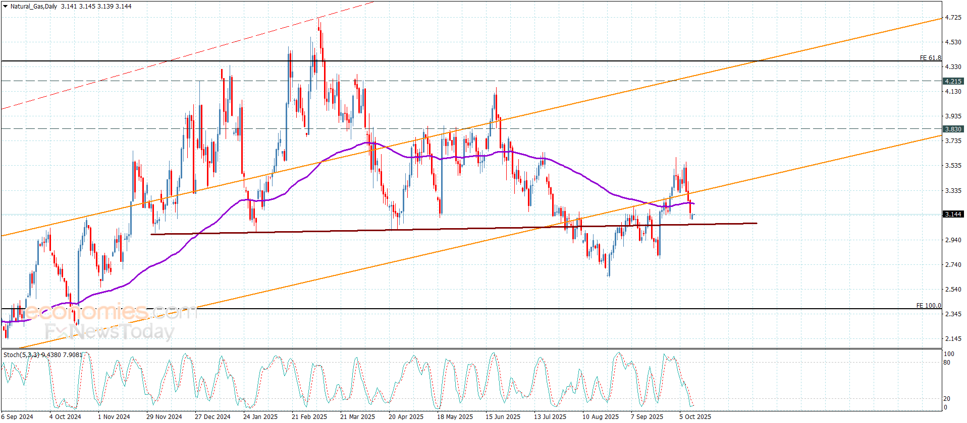 Natural gas price ended its last trading by reaching below the moving average 55 by its approach from the initial negative target at $3.050, confirming its surrender to the previously suggested bearish scenario.